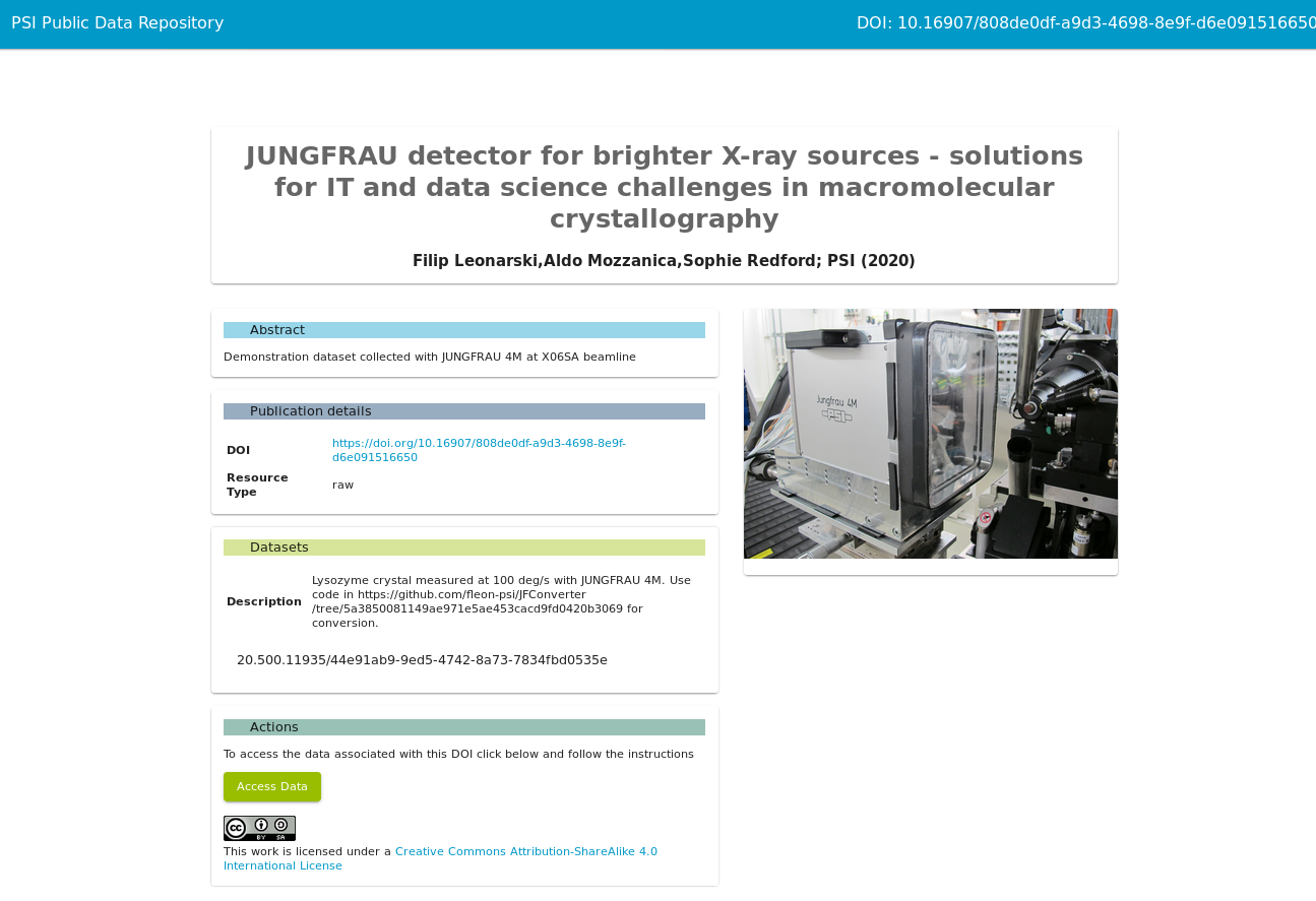 Once this is finished one can hit the "register" button (not shown in previous screenshot, because already in state registered)to register the DOI and thus making the data public. The resulting public landing page for this data then looks somethink like this