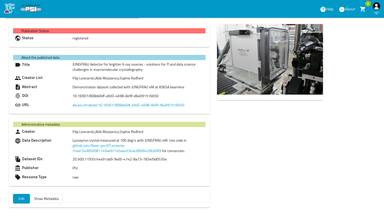 The user can select one or several datasets for DOI (Digital Object Identifier) registration producing a record in DataCite, a DOI provider, pointing to a local detailed landing page. SciCat offers a DataCite conform schema during the workflow. Any data that is known to the data catalog can be published and the publication workflow goes as follows: