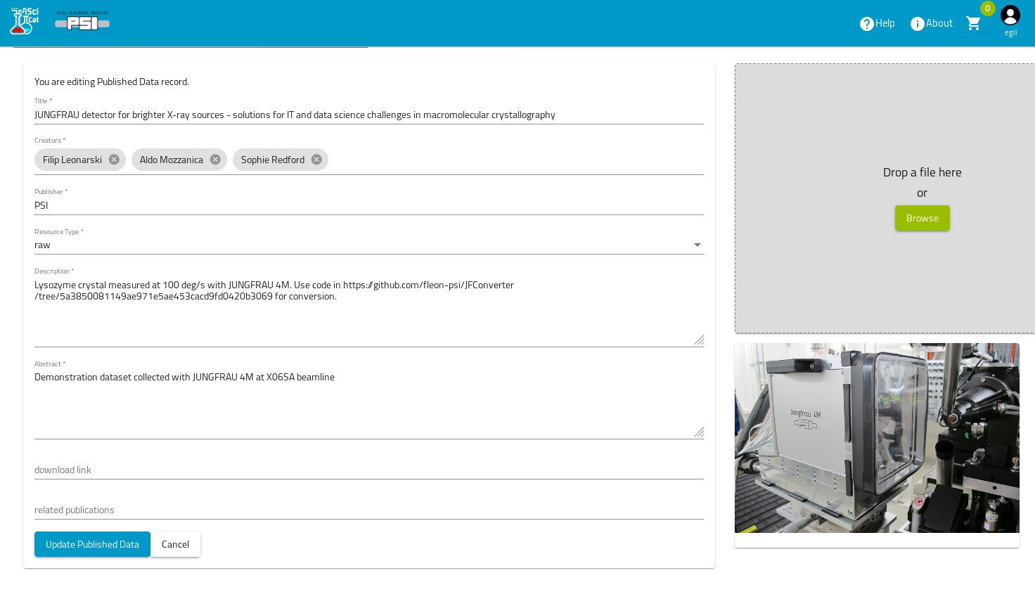 - That user assigns metadata relevant to the publication of the datasets, such as title, author (currently the name(s) under 'Creator'), abstract etc. One can work on it at a later stage, too and re-edit the registration. Note, that no editing will be allowed once the registration request has been sent.